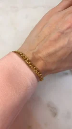 Description: Elevate your style with this exquisite Gold Curb Chain Lariat Bracelet. Expertly crafted in Gold Stainless Steel, this bracelet offers a luxurious shine and durability for everyday wear. Its unique lariat style closure provides a secure and comfortable fit, while the sophisticated curb chain design adds a touch of timeless elegance to any outfit.