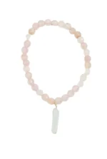 Enhance your style with this dainty and hypoallergenic Faceted Rose Quartz Bracelet. Handmade with love in Sausalito, California, this bracelet features a beautiful rainbow titanium quartz stone wrapped in gold. The faceted rose quartz beads add a touch of elegance to any outfit, making it perfect for both casual and formal occasions.