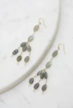 - Design: Gold dangle earring with 9 labradorite stones forming three elegant tiers.