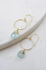 Experience timeless elegance with the Yuliya Earrings in Chalcedony. These exquisite earrings feature a delicate gold hoop accented with a gold hand-wrapped Chalcedony stone, perfect for adding a touch of sophistication to any outfit.