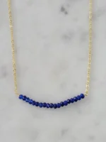 Discover the timeless elegance of the Michelle Bar Necklace in Sapphire from A Blonde and Her Bag. This exquisite piece features petite semi-precious Sapphire stones, delicately set in your choice of four different metal types, ensuring a versatile addition to any jewelry collection.