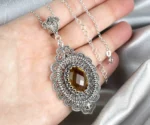 Order now and enjoy the beauty and sophistication of this unique piece. The pendant necklace comes with a velvet pouch, silver polish cloth, and a luxurious gift box. Perfect for gifting or as a treat for yourself.