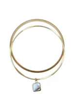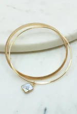 - Stylish Design: Set of two gold bangles with square freshwater pearl accents.