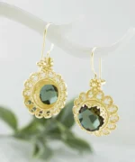 Elevate your style with these stunning Filigree Art Flower Design Gold Plated Silver Alexandrite Gemstone Women Drop Earrings. Crafted with intricate filigree flower designs in 14k gold plated sterling silver, these earrings are truly a work of art. The centerpiece of each earring features a beautiful lab-created alexandrite gemstone, known for its unique color-changing properties. Depending on the light, the alexandrite can appear green, red, or purple, adding a captivating element to your look.