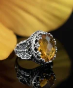 Make a bold statement with this stunning Citrine Gemstone Filigree Art Double Butterfly Detailed Women Silver Ring. Handcrafted from 925 sterling silver, this ring features an intricate filigree butterfly design that symbolizes transformation, growth, and new beginnings.