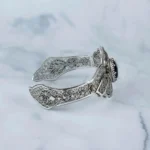 Filigree Art Black Onyx Gemstone Double Swan Figured Women Silver Cuff Bracelet – Elegant and Unique Statement Piece