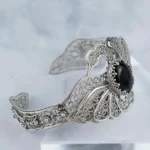 Introducing Our Stunning Filigree Art Black Onyx Gemstone Double Swan Figured Women Silver Cuff Bracelet
