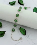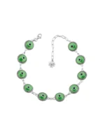 Make a resounding statement with our 10-bead Murano Glass Mint Green Evil Eye Braceletan enduring piece perfect for any occasion.