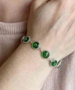Mint Green Evil Eye Sterling Silver Woman Adjustable Link Bracelet