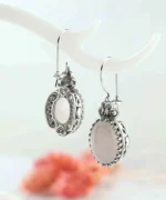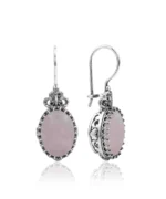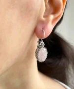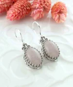 Elegant Design: Make a statement with these stunning 925 sterling silver filigree art heart detailed, pink rose quartz gemstone mounted women oval drop earrings.