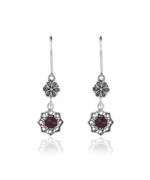 Introducing our stunning Sterling Silver Filigree Art Daisy Figured Gemstone Women Dangle Earrings. Handcrafted from high-quality 925 sterling silver, these exquisite earrings feature a beautiful daisy design with cabochon cut gemstones available in Carnelian, Black Onyx, Turquoise, Green Agate, or Ruby Corundum. Perfect as a special gift or a treat for yourself!