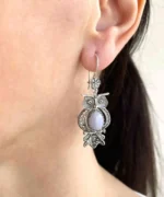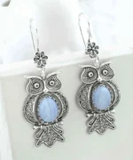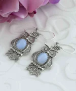 Introducing these exquisite Blue Lace Agate gemstone dangle drop earrings featuring a beautifully crafted 925 sterling silver filigree owl design. Handmade by our master artisan, these earrings are the perfect blend of traditional and modern art, featuring intricate filigree details that are both elegant and timeless.