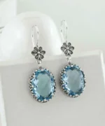 Experience the extraordinary blend of old and new art with these Filigree Art Blue Topaz Gemstone Women Silver Oval Dangle Earrings. Order now and add a touch of elegance to your style!