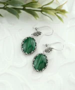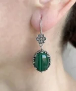 Filigree art is an ancient jewelry-making technique that originated in Mesopotamia and Anatolia. This timeless art form involves delicately crafting intricate designs using thin metal strands. These Filigree Art Malachite Gemstone Women Silver Oval Dangle Earrings beautifully embody the elegance and craftsmanship of this captivating technique.