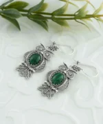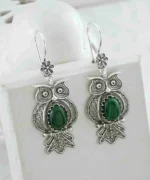 Enhance Your Style with Exquisite Filigree Art Owl Figured Malachite Gemstone Earrings