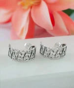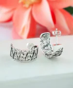 Upgrade Your Style with Sterling Silver Filigree Tulip Design C-Hoop Stud Earrings