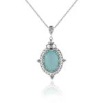 Indulge in Serene Beauty: Discover the ethereal charm of the Aqua Chalcedony Gemstone Oval Pendant Necklace, a stunning piece of handcrafted filigree art jewelry designed for women who embrace elegance.