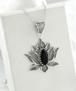 Elevate your style and showcase your unique personality with our Filigree Art Black Onyx Gemstone Blossoming Lotus Flower Women Silver Pendant Necklace. Click the ‘Add to Cart’ button now and experience the sophistication and beauty of this handcrafted piece of jewelry.