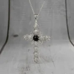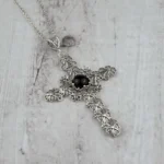 Elevate Your Style with the Filigree Art Black Onyx Gemstone Silver Cross Pendant Necklace
