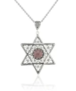 Introducing our handcrafted Filigree Art Cherry Quartz Gemstone Star of David Women Silver Pendant Necklace! This beautiful piece features a stunning 8.00 mm cherry quartz gemstone, expertly faceted into a round cut and set in a 1.95-inch tall and 1.45-inch wide silver pendant with a Star of David design. The pendant comes with a 20-inch silver chain for a comfortable fit.