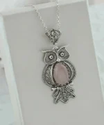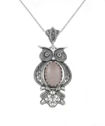 Add a touch of elegance to your jewelry collection with this handcrafted filigree art owl figured rose quartz gemstone women’s 925 sterling silver pendant necklace.