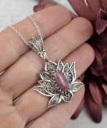 Don’t miss out on this gorgeous piece of jewelry. Order your Filigree Art Rhodonite Gemstone Blossoming Lotus Flower Women Silver Pendant Necklace today and elevate your style to new heights.