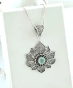 Our lotus flower pendant is a symbol of purity, enlightenment, and beauty, making it a meaningful and thoughtful gift for someone special or even for yourself. With its intricate filigree art design and stunning aqua chalcedony gemstone, this pendant necklace is sure to turn heads and become a cherished addition to your jewelry collection. Order yours today and experience the beauty of our handcrafted filigree art lotus flower pendant necklace!