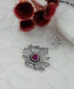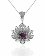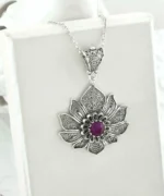 Elevate Your Style with the Filigree Art Silver Lotus Flower Ruby Corundum Gemstone Women Pendant Necklace