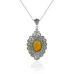 Elevate your style with this stunning Sterling Silver Filigree Art Yellow Agate Gemstone Oval Floral Women Pendant Necklace. The intricate floral design made from high-quality 925 sterling silver and the stunning yellow agate gemstone make this necklace a standout piece that’s perfect for any occasion.