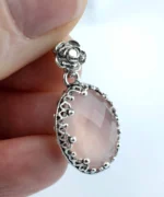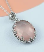 Elevate your style with our Handcrafted Filigree Art 925 Sterling Silver Pink Chalcedony Gemstone Pendant Necklace. This exquisite necklace features a stunning 12×16 mm double-sided faceted oval-cut Pink Chalcedony gemstone centerpiece that is sure to capture attention. The soft pink hues and intricate cut of the gemstone create a captivating focal point, making this necklace a statement of refined taste and individuality.