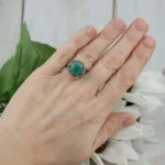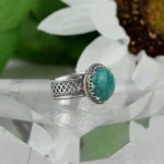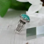 Enhance your jewelry collection with this exquisite Handcrafted Filigree Art 925 Sterling Silver and Amazonite Gemstone Cocktail Ring. Crafted by skilled artisans, this ring features delicate filigree artistry handcrafted from pure 925 sterling silver. The intricate floral motif with an oxidized finish adds a touch of elegance and uniqueness to this one-of-a-kind treasure.