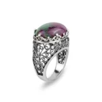 Gift your look bohemian flair with our expertly Handcrafted Filigree Art Ruby Zoisite Gemstone Women’s Silver Statement Ring.