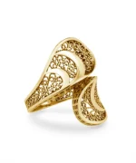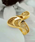 Add a touch of elegance and uniqueness to any outfit with this stunning Gold Plated Sterling Silver Filigree Art Women Twisted Bypass Cocktail Ring. Handcrafted with 14k gold plated sterling silver, this beautiful cocktail ring features intricate filigree details that showcase a combination of old and modern art. Its swirling filigree design adds sophistication to your look, making it the perfect accessory for any occasion.