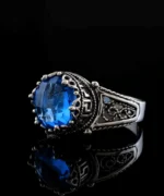 This stunning ring is crafted from 925 sterling silver in a delicate filigree art pattern, creating an intricate and eye-catching design. The centerpiece of the ring is a beautiful blue quartz gemstone, measuring 10mm in diameter and featuring a double side faceted, checkerboard round-cut. The stone is perfectly set within the 0.47″ / 12.00mm ring face, adding a touch of elegance to the overall design.