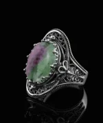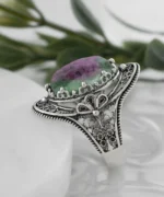 Ruby Zoisite Gemstone Filigree Art Woman Silver Statement Ring