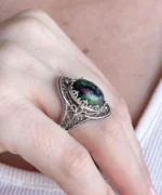 This exquisite ring is a delicate yet striking piece of jewelry that can be worn on any occasion. It is the perfect gift for your mother, daughter, sister, or beloved friend! This beautiful pink and green gemstone silver cocktail long ring is the perfect option for Thanksgiving, Christmas, Anniversary, Birthday, Mother’s Day, Valentine’s Day, or New Year’s gift for yourself or a loved one.