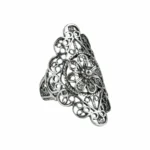 Explore the perfect fusion of style and quality with our Sterling Silver Filigree Art Lace Detailed Women’s Statement Ring. Its long design, measuring 1.25″ in length and 0.60″ in width, ensures you make a statement wherever you go.