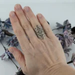 Crafted from high-quality sterling silver, this statement ring not only exudes elegance but is also durable and hypoallergenic. It’s a versatile piece that can complement any outfit, whether you’re dressing up for special occasions or adding a touch of glamour to your daily wear.