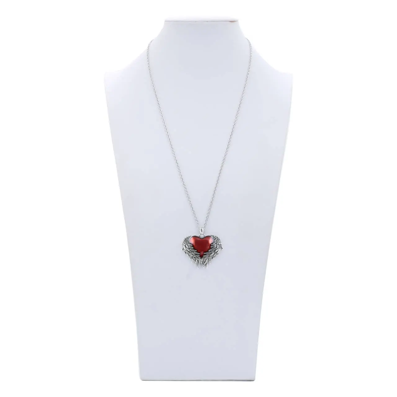 - Design: Heart-shaped pendant adorned with protective steel wings